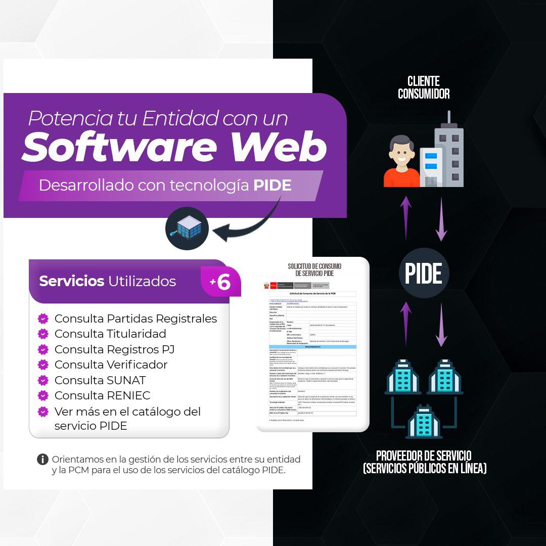 Desarrollo de software web conectado a servicios públicos como SUNAT, RENIEC y Registros Públicos.